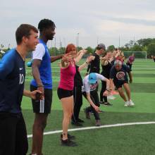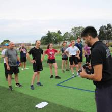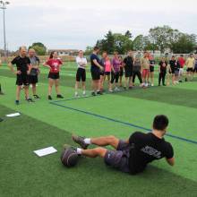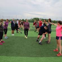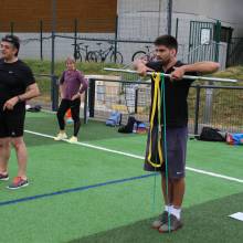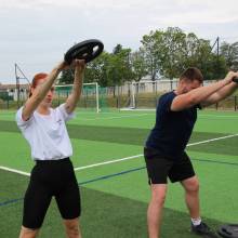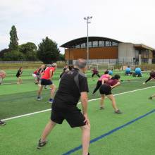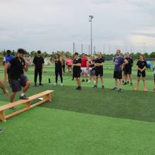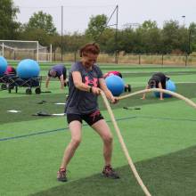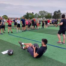 Après un échauffement d'une quinzaine de minutes, les courageux sportifs ont réalisé un circuit composé d'ateliers de niveaux d'intensité variable : rowing, twist abdo, corde à sauter, disque tête...