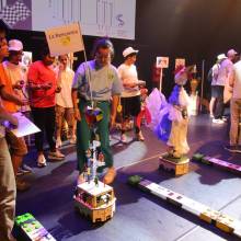 Des robots à roues holonomes, transformés en véritables chars de carnaval, ont défilé sous nos yeux ébahis sur le thème des valeurs du Sport et de la République. Huit équipes se sont affrontées : La rencontre, Char Jamal, Les Champions de la liberté, Les Poussins, Mon hameau éclairé, Octopouce, La Flamme mécanique et Turbo Liberty.