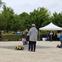 Le cortège restreint, mené par M. le Maire et Paul Berguin, président de la FNACA, s'est rendu sur le « Carré de Mémoire », au jardin public Nelson Mandela.