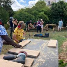 Un bon petit groupe ce dimanche matin, dès 8h30, à la fraîche pour l'atelier de conception de mobilier pour la Plaine centrale du Quartier du Buisson !
