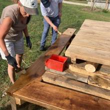 Entre désherbage, huilage, montage… chacun a mis la main à la pâte dans la bonne humeur !
