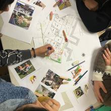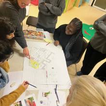 La re-végétalisation de la cour de la Maison de tout-petits est en pleine réflexion avec une démarche axée sur le bien-être des enfants. L'îlot de fraîcheur, créé par l'installation d'une pergola à l'été 2022 et le maintien des 3 arbres, constitue un premier pas vers un environnement plus agréable.