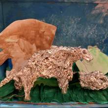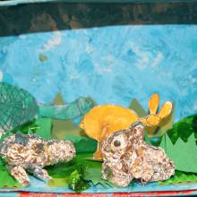 - une de l'école Corot (moyenne et grande section de maternelle) qui a travaillé sur un projet plastique intitulé "scènes de bêtes, à la manière de La Fontaine". Après la découverte des fontaines et des statues d'animaux dans les jardins du château de Versailles, les enfants ont découvert les fables de la fontaine à travers des albums aux illustrations variées. Chacun a choisi ses animaux à modeler en papier d'aluminium. Vous pouvez y retrouver les différentes fables représentées : la cigale et la fourmi, le corbeau et le renard, le lièvre et la tortue, le loup l'agneau, le lion et le rat, la grenouilles et le bœuf...