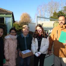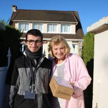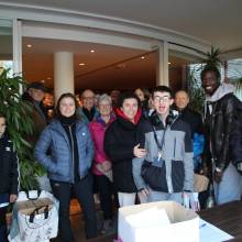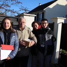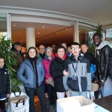 Accompagnés de M. le Maire, Frédérique Dulac, 1ère adjointe, Slimane Moalla, adjoint à la vie économique, Denis Guyard, élu à la communication et à la petite enfance, Roberto Drapron, adjoint à la citoyenneté, Patrick Marquet et Fabienne Bellin, conseillers municipaux, d'agents de la Ville, et de 10 bénévoles, une quarantaine d'élèves de CM2 ont distribué des boîtes de gourmandises à nos seniors de plus de 80 ans ce samedi 16 décembre.