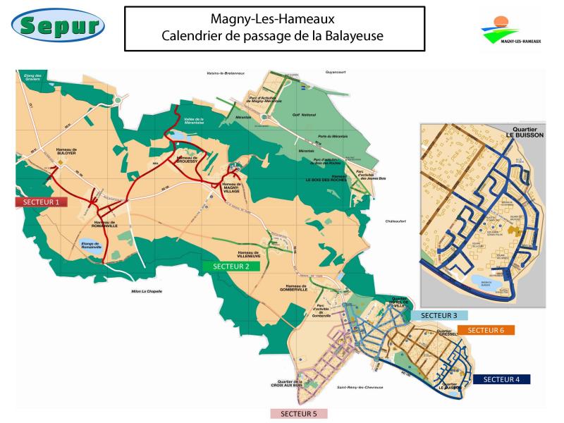 Une balayeuse mécanique passe toutes les 7 semaines pour nettoyer chaussées, trottoirs et caniveaux. Afin d’optimiser le nettoyage, merci de retirer tout élément pouvant gêner son passage (voiture, sacs, bacs, etc.). Le planning de passage a été établi à l’année sur 6 secteurs de la Commune.