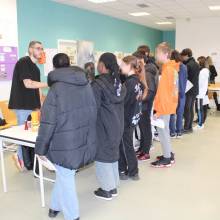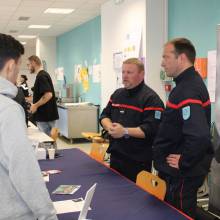 Pour les aider, le collège Albert Einstein organisait ce matin un forum des métiers auquel il avait convié de nombreux partenaires pour expliquer leur métier et parcours professionnel. Étaient notamment présents la Ferme Ecole Graines d'Avenir, la Brasserie La Place, les pompiers, la Marine nationale et le service Communication de la Ville.