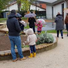 Quel drôle de clin d'oeil de la météo : la pluie, tant attendue ces derniers mois, était au rendez-vous ce matin pour l'inauguration de la nouvelle cour de l'école qui a été déminéralisée.