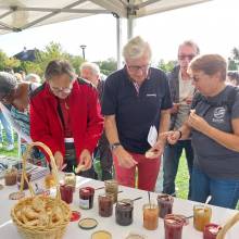 Après la cérémonie, les habitants ont eu l'opportunité de goûter aux 15 délicieuses confitures maison confectionnées par 15 magnycois, à coup sûr gourmets et gourmands !! Les personnes présentes ont savouré une variété étonnante de confitures, des classiques (fruits rouges ou reine Claude) aux plus audacieuses à l'image de la confiture courgettes/gingembre/citron !