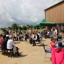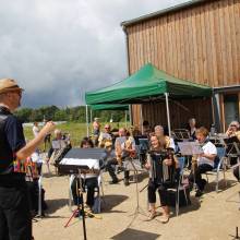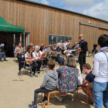 La matinée s'est terminée par un concert hors les murs de l'Harmonie Magnycoise. Concert qui a débuté sous un grand soleil mais qui a été entrecoupé par un déluge de pluie, ce qui n'a pas découragé ni les musiciens ni les spectateurs !