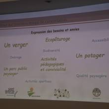 Ces ateliers, organisés sous forme de tables rondes thématiques, ont été animés par les associations Graine de Jardins et Green Resistance. Ils ont permis aux participants de traduire concrètement les attentes et ambitions des habitants exprimées lors du premier atelier, en matière d’ambiances paysagères et agricoles. Les discussions ont porté sur les choix possibles en termes de production végétale, de présence animale, de matériaux, et de mobilier urbain.