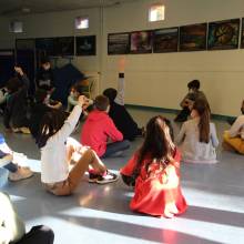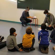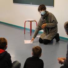 Pendant que le premier groupe de 24 enfants "utilisait son corps", un deuxième groupe travaillait sur l'écriture et plus spécifiquement le haïku : poème court écrit pendant la Première guerre mondiale, dans les tranchées.