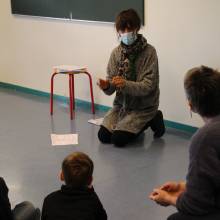 Maflohé, artiste pluridisciplinaire, créera le livre infini N°17 avec les 49 élèves des classes de CP/CE1 de Mme Camelo et de CM1/CM2 de Mme Guillard de l'école Saint-Exupéry.