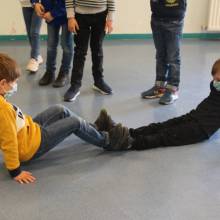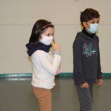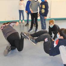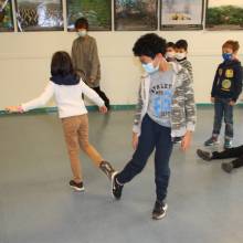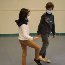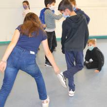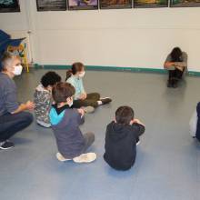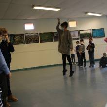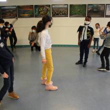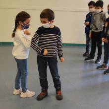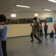 Cette première rencontre, jeudi 26 novembre, entre l'artiste et les enfants a été très sportive, en danse et en mouvement, grâce à un travail préalable mené en classe, autour des mots "mémoire, paix et fraternité".