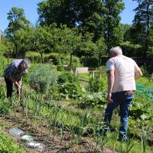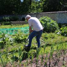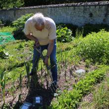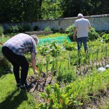 Patrick, Marie-Josée, Isabelle, François, Régine... de l'association Les amis du dehors ont travaillé tout ce mardi pour préparer les jardins d'évocation (médicinal, potager, bouquetier) et le verger qui seront ouverts au public exceptionnellement le dimanche 6 juin dans le cadre des "Rendez-vous aux jardins" (événement national).