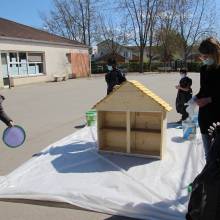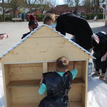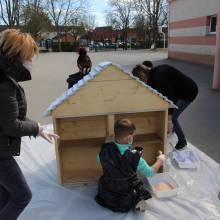 Après un temps de repos en début d'après-midi, les maternelles se sont amusés à créer de jolies fleurs. Les élémentaires se sont mis, quant à eux, à un atelier peinture pour décorer la jolie boîte à livres réalisée par un habitant du hameau de Gomberville avec du matériel fournit par la Ville. La boîte à livre devrait être installée prochainement (après que les artistes en herbe aient fini de la peindre !) non loin du groupe scolaire Petit-Prince / Saint-Exupéry.