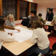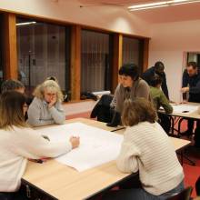 Après les enfants, c'est au tour des parents, enseignants, agents des espaces verts et de l’équipe d’animation de se projeter dans la future cour végétalisée de l’école Saint-Exupéry !