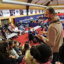 Deux classes de l’école Louise Weiss ont eu la chance de participer aux entraînements, à des ateliers d'initiation cet après-midi (dont utilisation de faiteuils roulant et initiation au showdown, du tennis de table pour les non-voyants) et à échanger avec le préparateur mental et entraîneur de table Florian Westeel.
