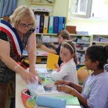 Magali Dousse, Maire-Adjointe déléguée au développement intergénérationnel, et Nathalie, du service seniors, sont venues à la rencontre des élèves de CM1 et CM2 de l'école Rosa Bonheur ce matin dans le cadre du Passeport du civisme.