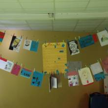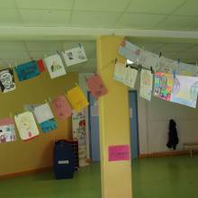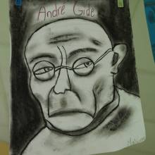 Dans le cadre du passeport du civisme et de la Grande Lessive, la classe de CM2 de Mme Champenois a réalisé une exposition sur André Gide : sa vie, ses citations, son œuvre.
