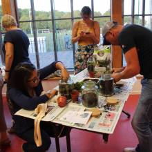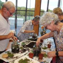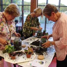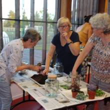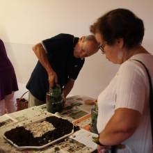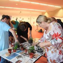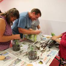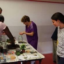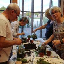 Avec du terreau, de la poudre zolan, des graviers, de la mousse et une grande diversité de plantes grasses mis à leur disposition (Jardinerie du Mesnil), les participants ont pu composer un terrarium et laissé parler leur créativité.