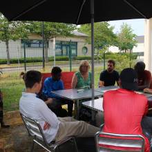 Le changement climatique est au cœur de la rencontre, ce samedi 17 juin, qui a permis à M. le Maire et trois de ses adjoints (Roberto Drapron, élu à la démocratie locale et initiatives citoyennes et associatives, Laurence Renard élue à la politique de territoire durable et Magali Dousse élue au développement du lien intergénérationnel) d'échanger avec les jeunes inscrits au Service Jeunesse et Citoyenneté de la Ville de Magny-les-Hameaux.