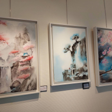 Une technique ou l'on humidifie le papier que l'on tend ensuite sur un châssis et que l'on verni et une technique plus traditionnelle d'aquarelle avec un passe partout et un verre.