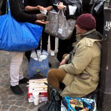 La redistribution de produits de première nécessité : vêtements, hygiène, nourriture, matériel, etc...