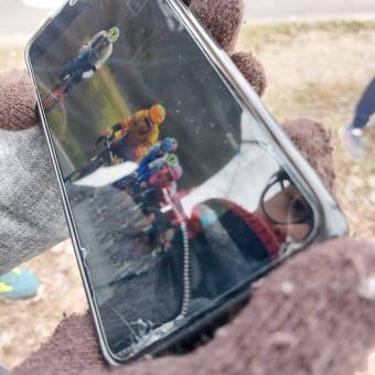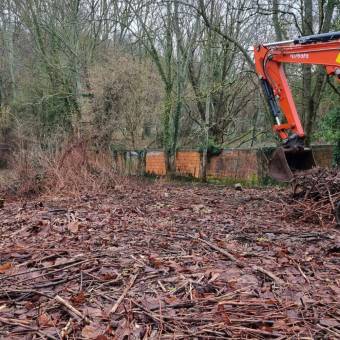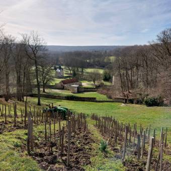Remise en place printanière des échalas des 500 pieds de vigne du domaine du Musée national de Port-Royal des Champs